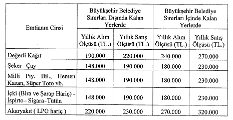(2) Buna göre, anılan maddelerin ticaretini yapanların, 2019 takvim yılında da basit usulden yararlanabilmeleri için alış, satış veya hasılatlarının 31/12/2018 tarihi itibariyle aşağıda belirtilen hadleri aşmaması gerekmektedir.