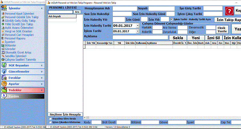 Kanunlar gereği yıllık izin takibi detaylı olarak yağılabilir ve "Yıllık İzin Defteri" program üzerinden oluşturulabilir.
