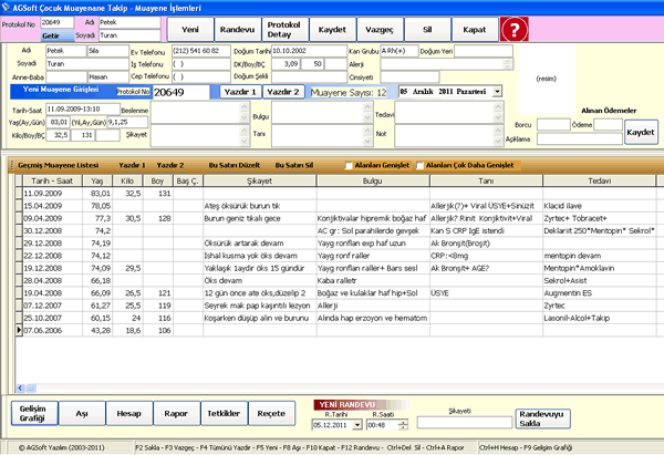 yapılan muyene ve geçmiş muyene detaylarının izlendiği