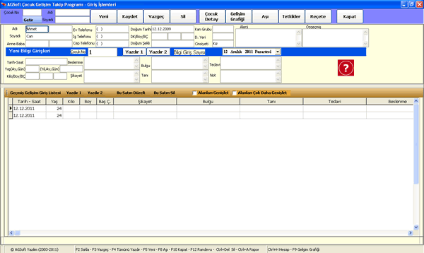 girilebilir, daha önce yapılan gelişim takip işlemlerine ait