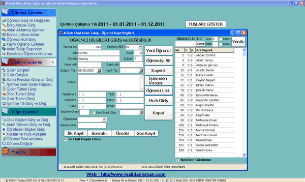 İşletme Defteri Programı okulların öğrenci aidatların kolay