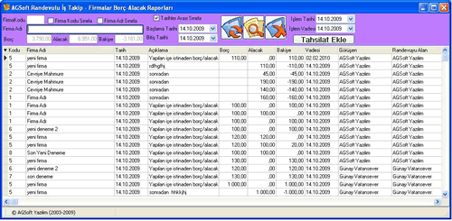 Firmaların yapılan işler sonucu oluşan cari hesap durumları buradan